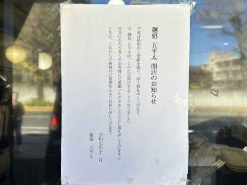 大江の老舗うどん屋「五平太」が12月25日で閉店