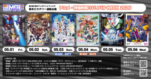 また、連動して「熊本ピカデリー」では、5月1日からアニメ・特撮映画リバイバルweekとしてご覧の作品が上映されます。