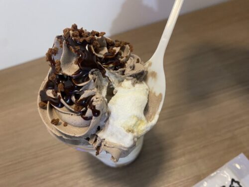 近年ブームになっている、濃厚ミルクのソフトクリームとは逆に晩御飯や飲んだ後にも美味しく食べられるようにあえてさっぱりしたミルクアイスになっています。ペロリと完食しちゃいました。