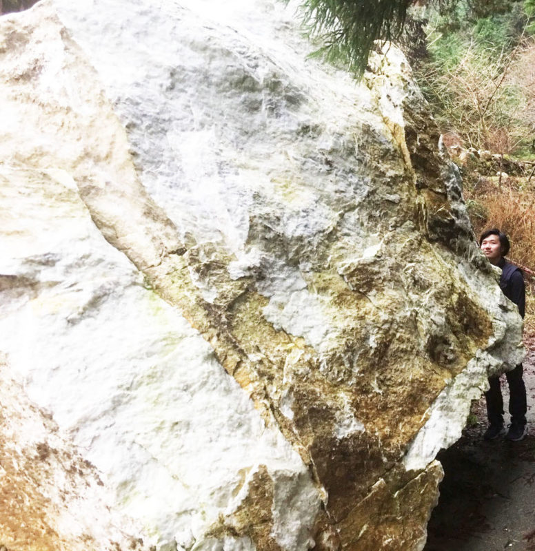 遠くから見ると雪が積もっているように見えるぐらいの美しい石です。