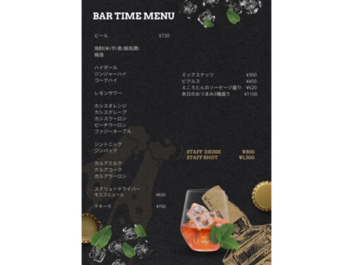17時から22時まではバータイムとなり、17時以降はお酒が提供されるとのこと。