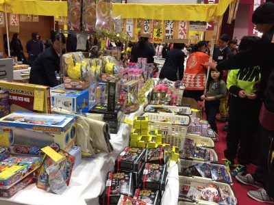 おもちゃ、クレープやおこわなど色々な企業の食品が生徒たちの手で販売されていました。