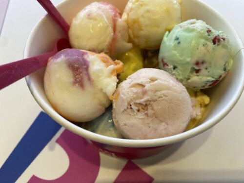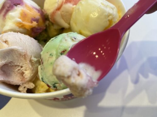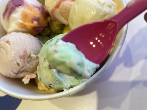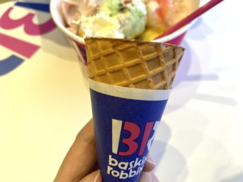 アイスを食べ続けると口の中が冷たくなって味が良く分からなくなってくるので、コーンを別途注文して齧りながらアイスを食べると最後まで美味しく食べることができますよ。