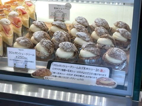 ふわふわクリームがたっぷりつめられたクロッカンシュークリームに、ザクザク食感が味わえる玄米シューもありますよ。