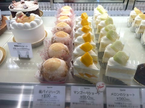 桃やマンゴー、メロンといった、この季節にしか食べられない旬のフルーツを贅沢に使ったケーキは、どれもキラキラでとっても美味しそう~!!