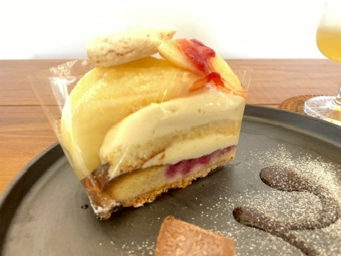 タルト生地やスポンジ生地も、しっとりふわふわ、上品な甘さで、決して桃を邪魔することのないエレガントな味!