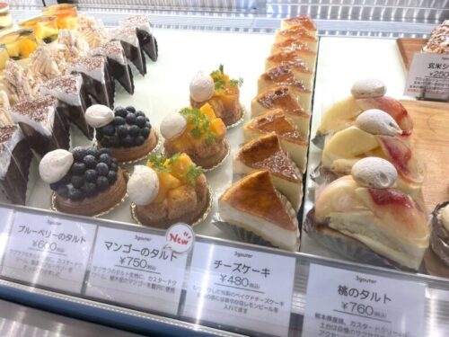 マンゴーやブルーベリー、桃のタルトやチーズケーキも…。