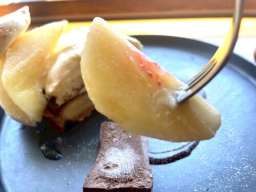 桃のタルトを味わう