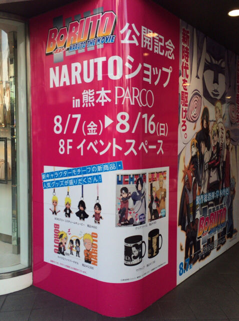劇場版NARUTO「BORUTO」の公開を記念して熊本PARCOの8Fにて、NARUTOショップが開催されております。