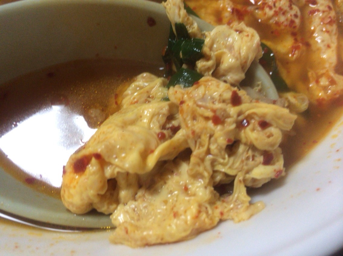 見た目はキムチラーメンの様にも見えますがキムチは一切入っていません。