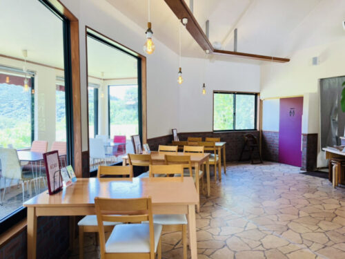 こちらは大自然を贅沢に堪能できるテーブル席。気持ちがいい快適な空間です。