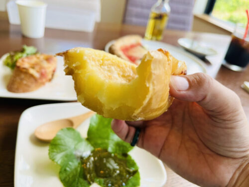 こちらは、リンゴをくり抜いた穴の中にグラタンが入った「リンゴのグラタン」。さわやかでほんのり甘いリンゴとクリーミーなグラタンを存分に楽しめる逸品です!