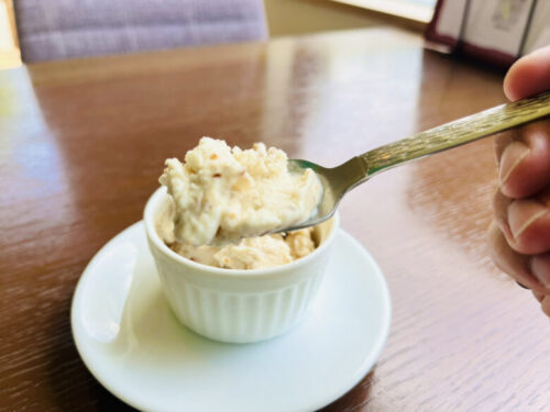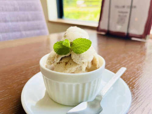食後は、手作りジェラートの「アーモンド」をチョイス。細かく刻んだアーモンドが贅沢入っていて、口に入れた時の食感・風味ともにアーモンドの美味しさがしっかりと感じられます。
