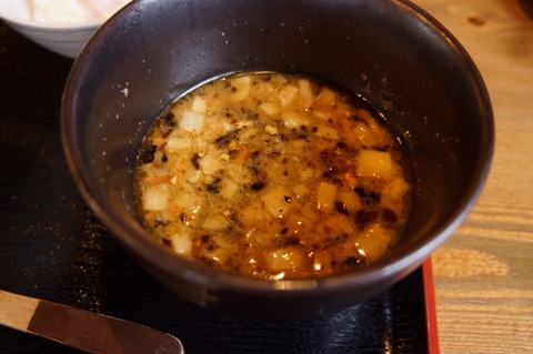 余ったツケ汁をレンゲですくって