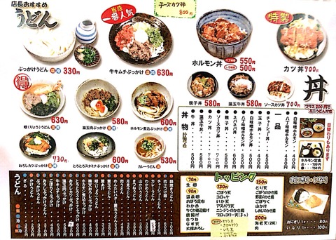 本格うどん以外にも丼メニューも充実しており