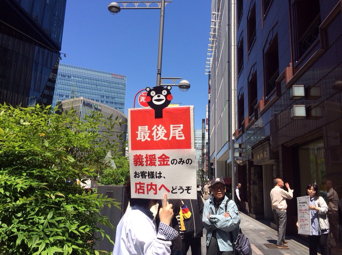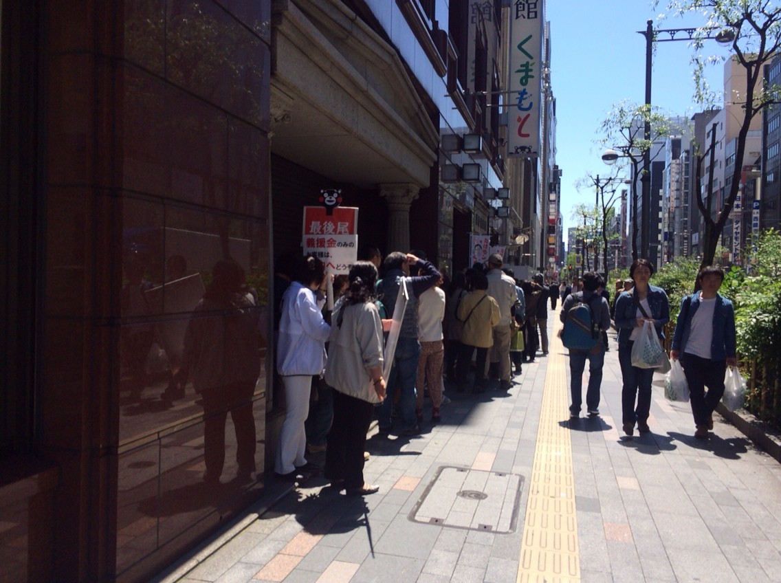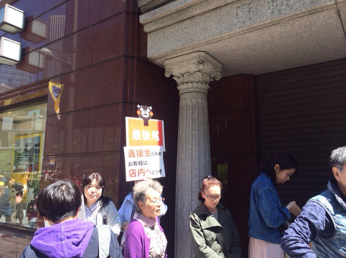 「熊本が心配で熊本の商品を買って早く元気になってもらいたいので並んでいます‼︎」