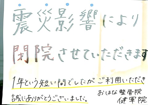 震災の影響により閉店