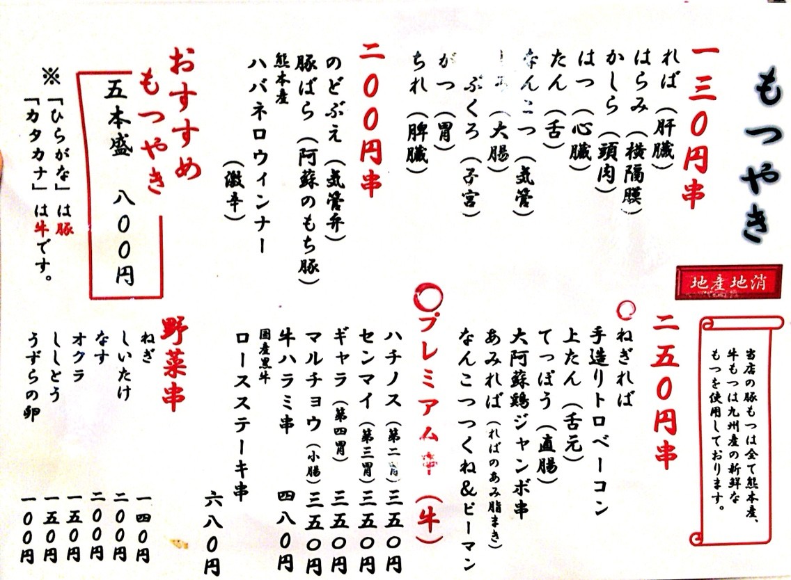 もつやき5本盛800円