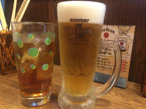 ビール500円 烏龍茶330円を注文