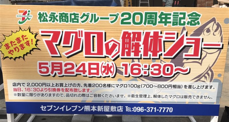 5月24日16:30から、セブンイレブン熊本新屋敷店でマグロの解体ショーが開催されるそうです。