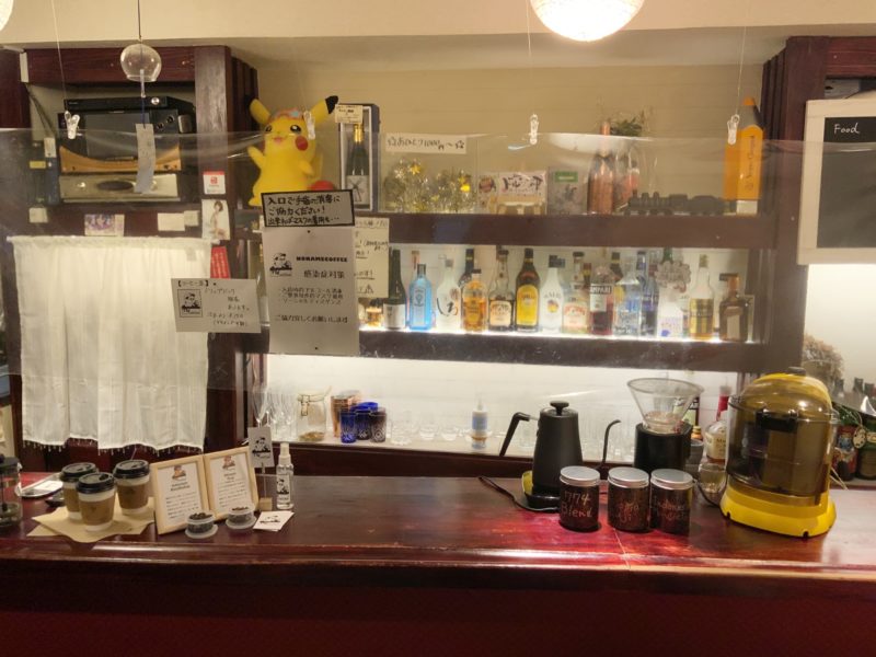 店内は普通のバーですが、カウンターにはコーヒーセットが並べられカフェのようにレイアウトしてあります。