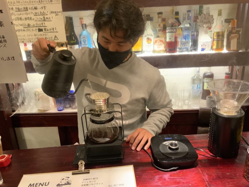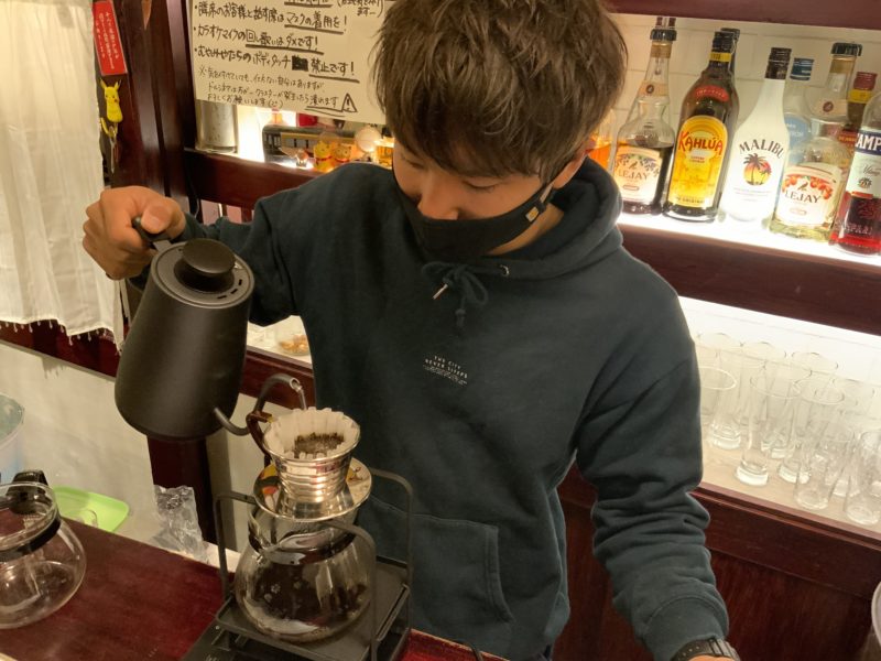 学生だからと侮ることなかれ、本格的なハンドドリップでしっかり淹れてくれます。