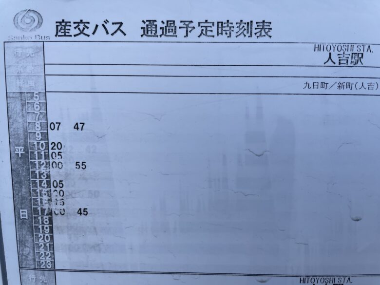 九日町/新町(人吉)方面のバスに乗り込みます。