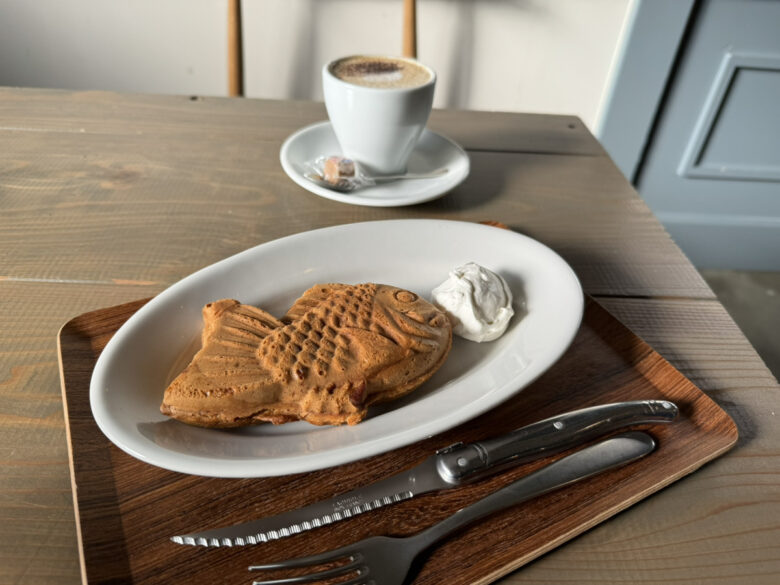 フォークとナイフでたい焼きを食べるのは初めての体験だったんですが、皮がパリパリで中はあんこがぎっしりだったので、あったほうが上品に食べられます。