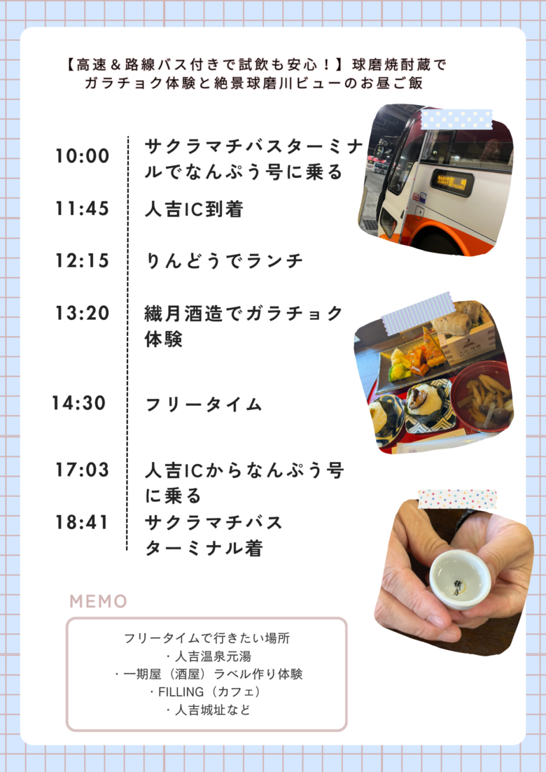 なので、1人で人吉を満喫するもよし。家族旅行したいけどみんな行きたい場所が違う!!とお悩みのご家族もよし。人吉行きたいけど車がない!!って方もよし。八方ヨシな人吉旅を満喫できます。