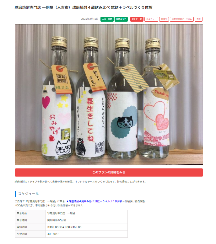 球磨焼酎専門店 一期屋(人吉市)球磨焼酎4蔵飲み比べ 試飲+ラベルづくり体験をオプション!