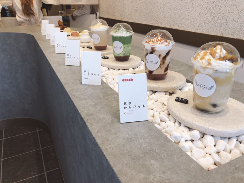 店内には、タピオカドリンクにつぐネクストブームと言われている「飲むわらび餅」や「生わらび餅」が並んでいます!