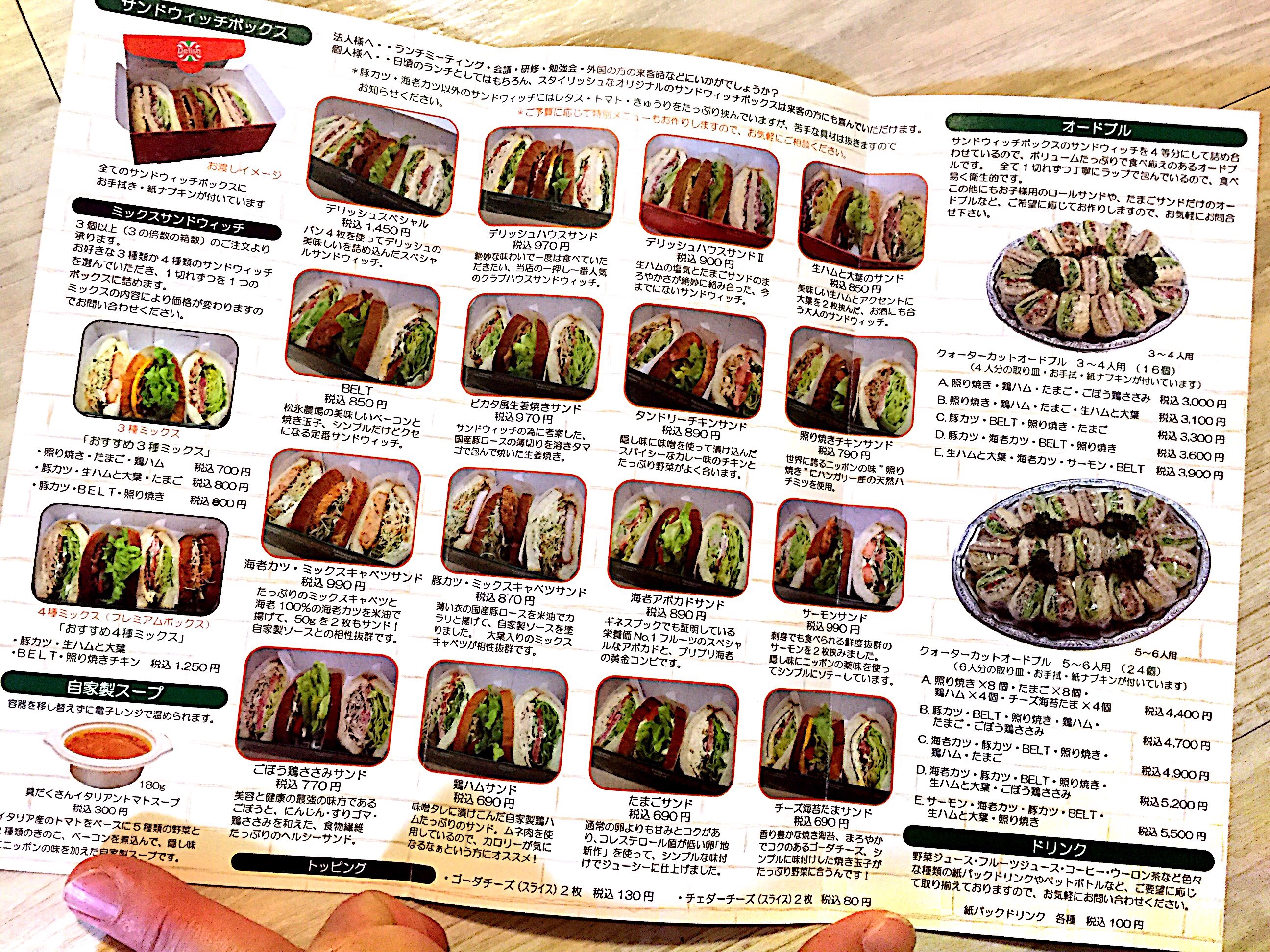 Delish SANDWICHのメニューはこちら。