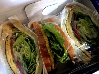 今回この豊富なメニューの中から「チーズ海苔たまサンド」と「BELT」をオーダー。オードブルは2日前まで注文との事。お持ち帰り用の箱に詰まったサンドウィッチボックスは当日注文ができ注文後から出来上がりまで15分前後。事前に注文できますので、お忙しい方はぜひお電話などでご注文を!