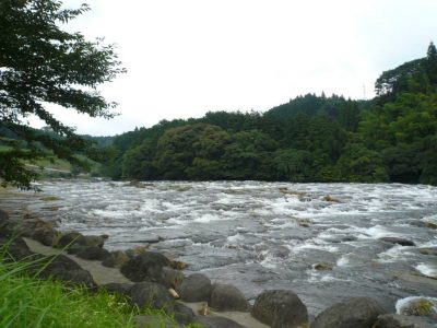 熊本県の菊池水源の下流に位置し、目の前を千畳河原(せんじょうがわら)が流れています。夏場は子供たちが、ここで川遊びをするそう。山や緑に囲まれ子供たちが気持ちよさそうに楽しんでいる風景が目に浮かびますね。