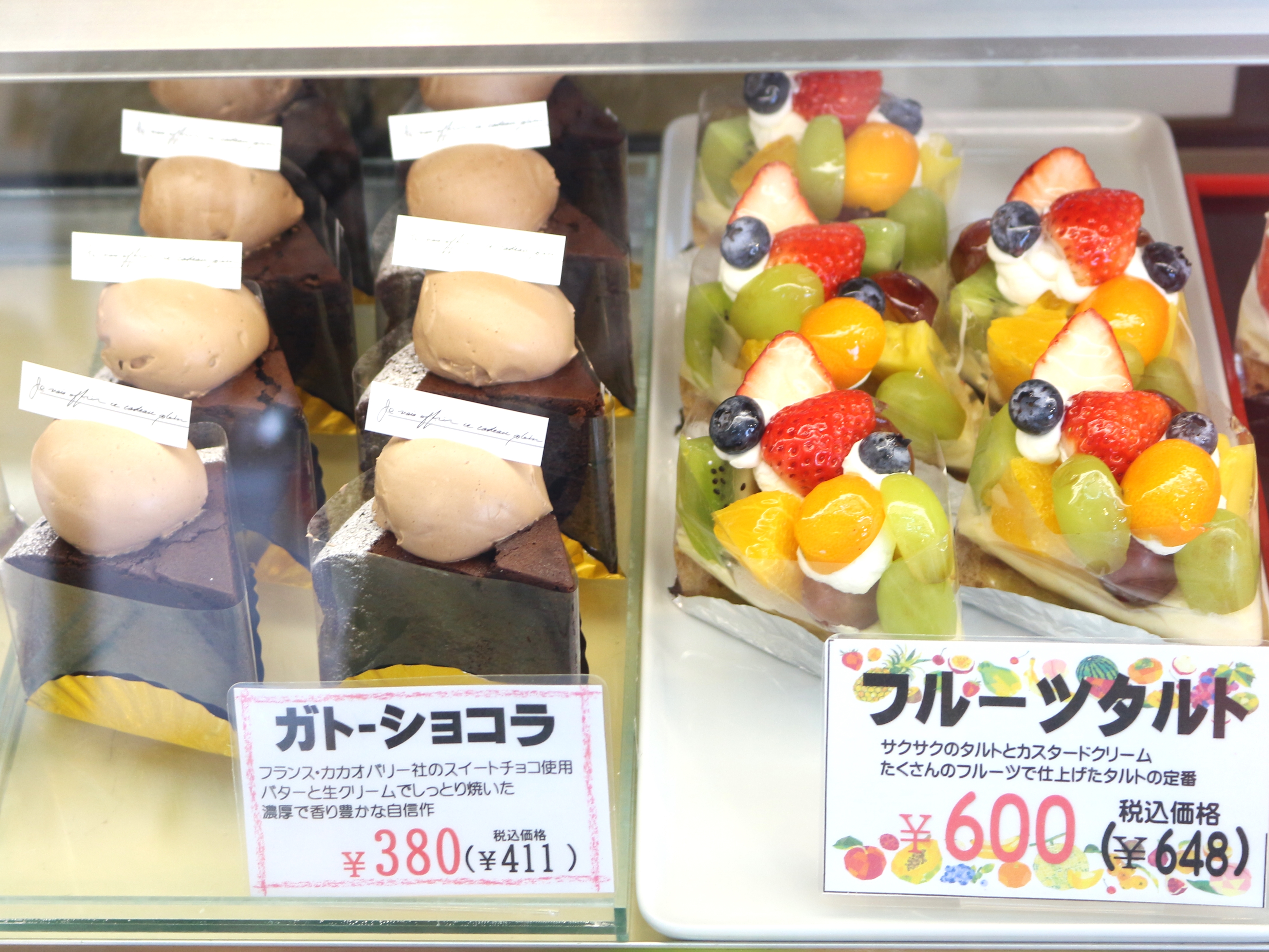 本日ご紹介する「フランス菓子 オルタンシア」の特徴は旬のフルーツを贅沢に使ったケーキ。ショーケースに沢山並んでいます。