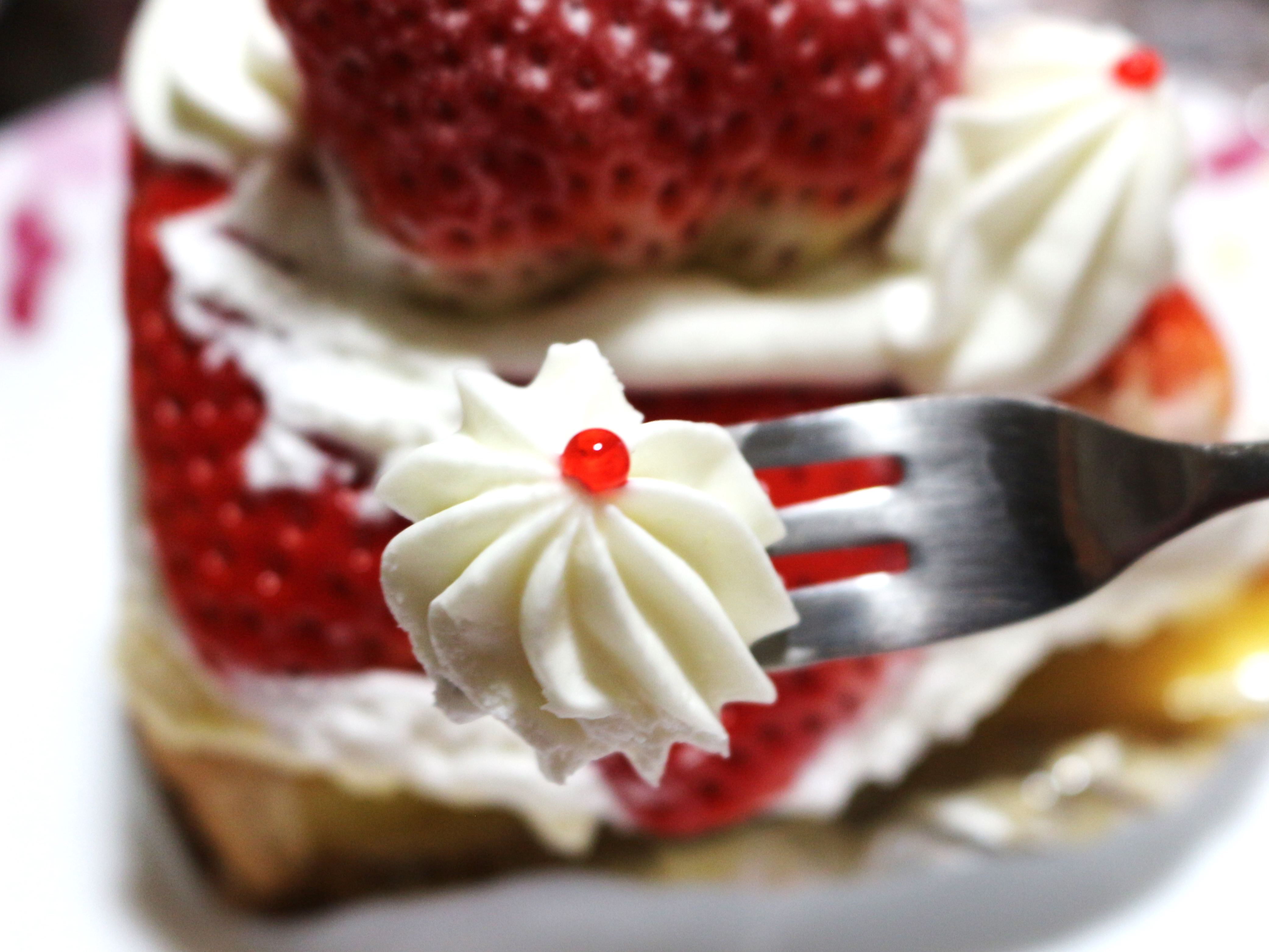 まずは今回の目的、『大きすぎるいちごタルト』。上にも下にもいちごがたっぷり。
