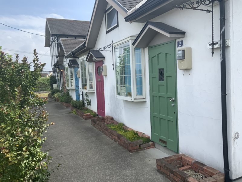 回り込んでみるとなんか海外のアパートみたい。なんでも建てた人がイングリッシュガーデン作ってたそうな。