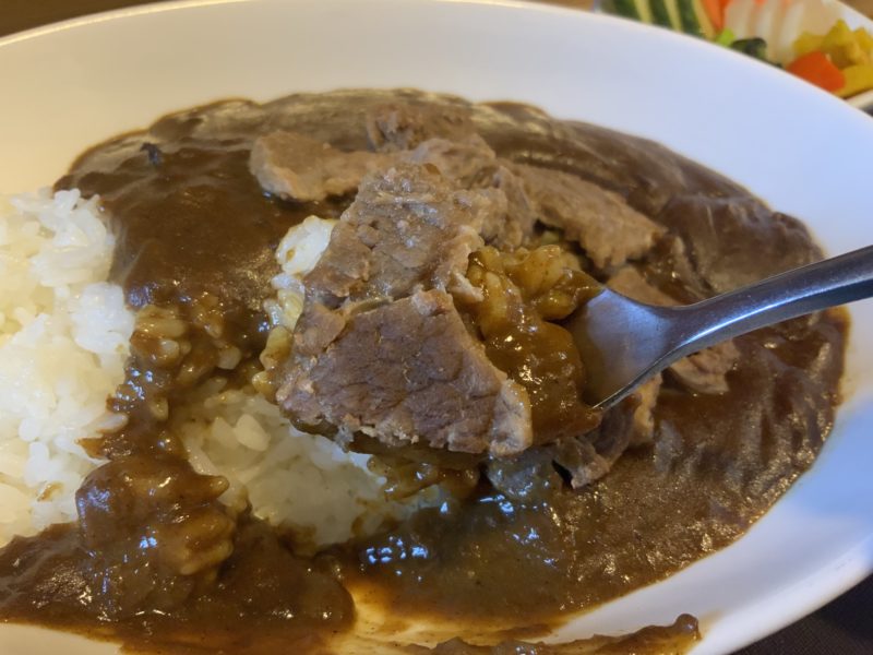 馬すじがルーと一緒に煮込んであるわけではなく、上にごろっとトッピングしてあるのが嬉しい。