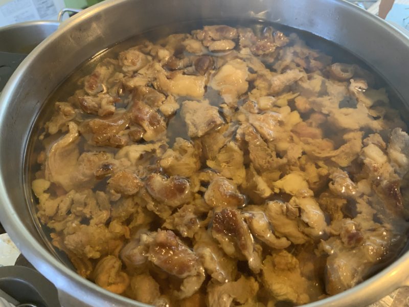 この別に煮込んでいる馬すじ。このつゆをベースにルーを作るそうです。