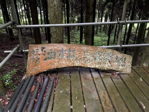 駐車場手前には、油すましの墓へ誘導する看板もありましたが、木と同化して文字が見えません。きっと、これは選ばれし者にしか見えない文字なんだと思います。