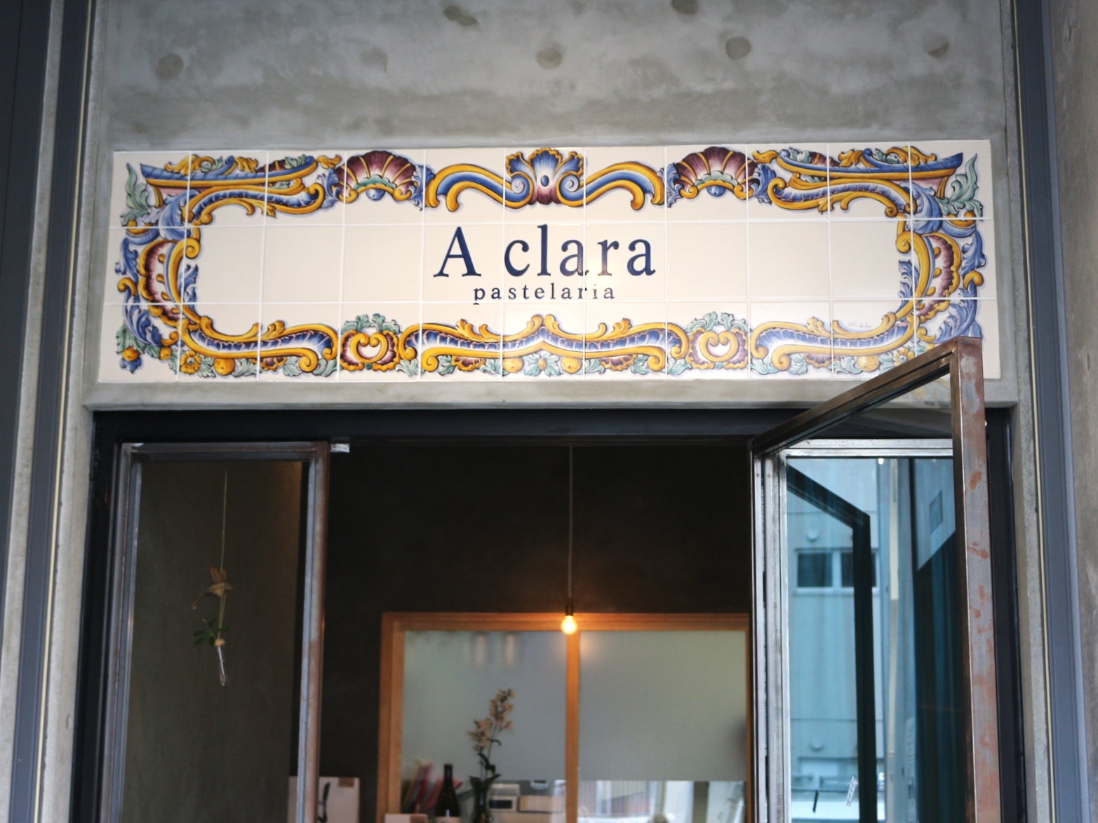 ちなみに、この入り口上の可愛いタイルはポルトガルから取り寄せたものだそうですよ。初めて見ましたポルトガルタイル。ちなみにお店の名前はクララと読むそうです。