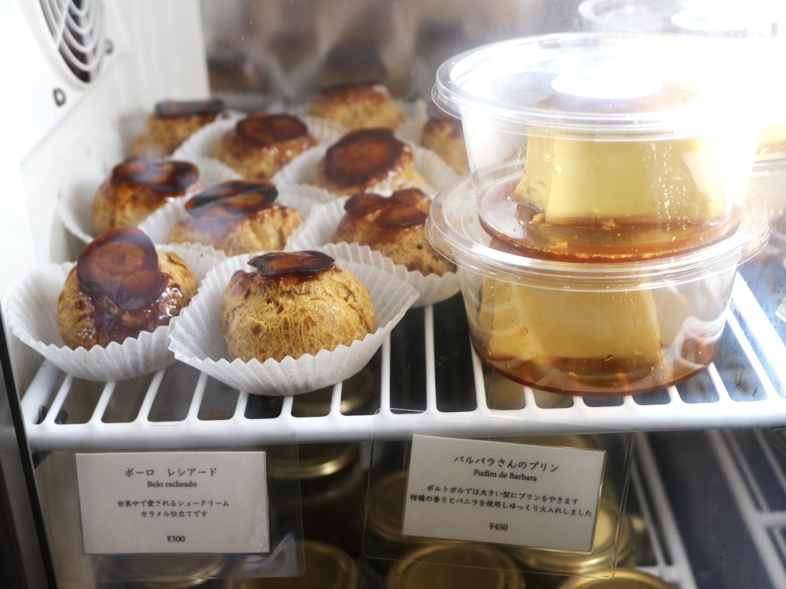 次はこちら、人気メニューだというシュークリームです。小ぶりのシュークリームの上にカラメルが。これ、一度に何個も買っていく方も多いんだとか。