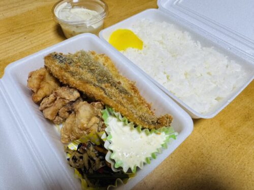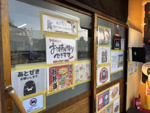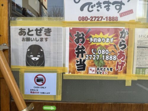 旗はアジフライでしたが、入口はからあげお弁当推しです。そしてなんさんあとぜきばしてください。