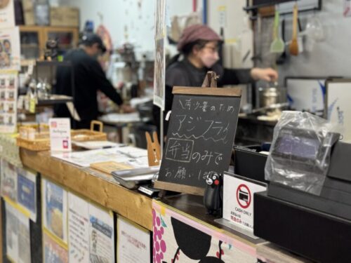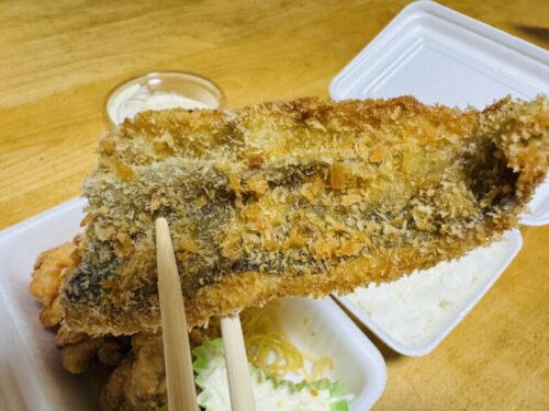 ただ、海が時化ている時はアジの枚数が限られ、アジフライ単品の提供が出来ない事もあるとの事ですので、10枚購入などされる時は一度お電話にてご確認ください。