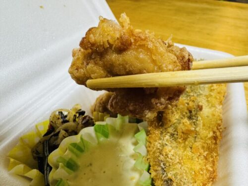 そしてこちらの唐揚げは、冷めても美味しいをモットーに、漬け込みをしない唐揚げだそう。ご飯もすすんでしまう大人から子供まで大喜びのお弁当です。