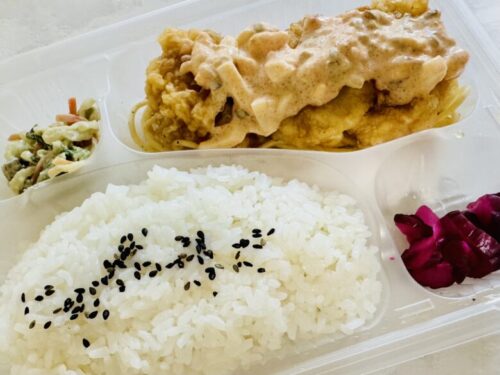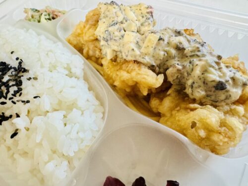 こちら甘酢が掛かった状態のチキン南蛮弁当。