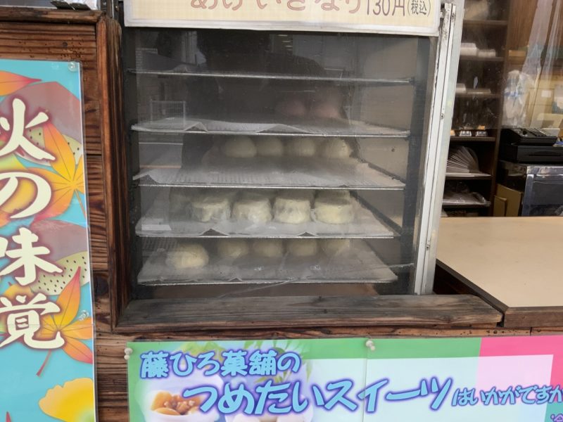 蒸し器に入っている「甘酒まんじゅう」「いもまんじゅう」「いきなりだんご」を、注文後に油で揚げてくれるんです。