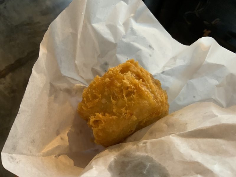 持ち帰っても温かく美味しく食べられたのですが、揚げた瞬間のあっつあつは別格でした。