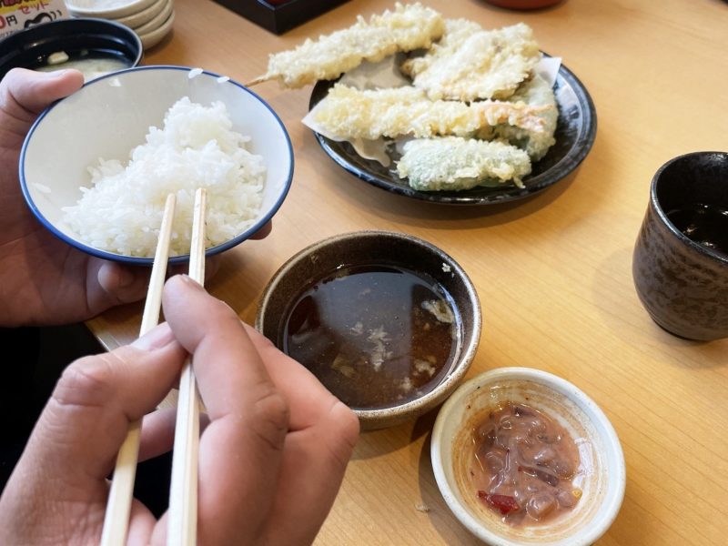言われて気付いたのですが、私はほとんど塩辛でご飯を食べ続けているので、天ぷらがほとんど減っていませんでした。