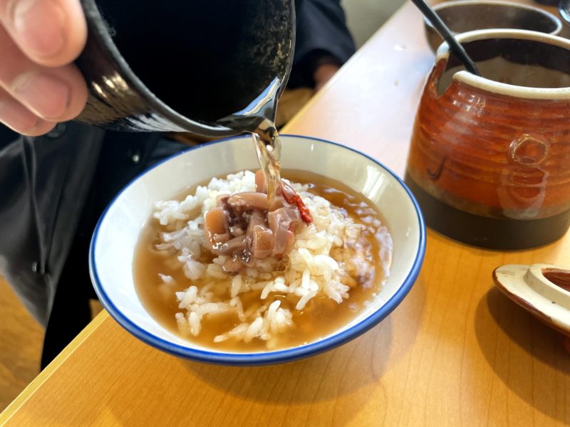 ちなみに、通はご飯に乗せた塩辛に天丼のたれとお茶をかけてお茶漬けにして〆ます。